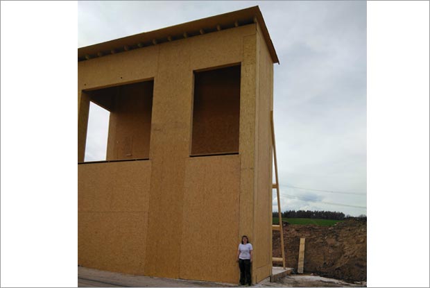 Außergewöhnliche Baustelle: Eine Fassadenunterkonstruktion, die Zimmerin Nicole Köppel und ihr Team errichtet haben.