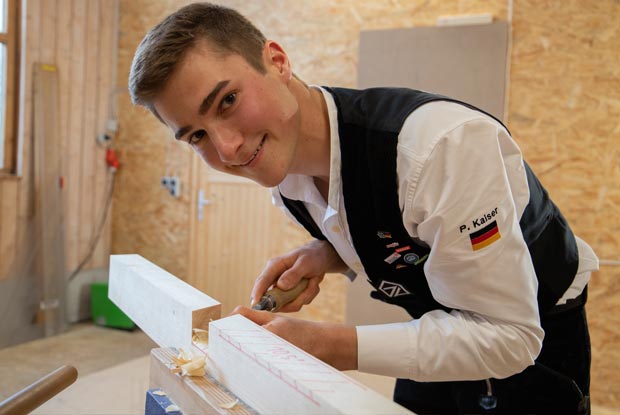Philipp Kaiser freute sich riesig, als er von der Nominierung für die Weltmeisterschaft erfuhr. Der 21-jährige Zimmerer-Geselle aus Rot an der Rot in Baden-Württemberg ist seit Frühjahr 2018 in der Zimmerer-Nationalmannschaft und tritt bei der Berufsweltmeisterschaft für Deutschland an.