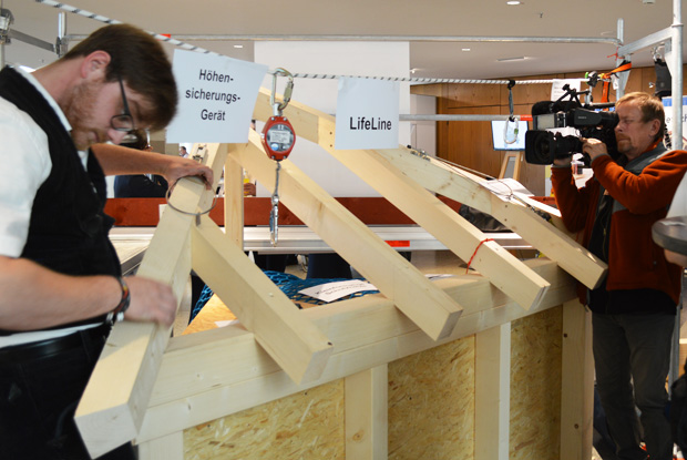 Absturz ist für Zimmerer die größte Gefährdung auf Baustellen. Insbesondere gegen den Absturz nach innen hat die BG BAU gemeinsam mit dem „Runden Tisch Zimmerer“ fünf Maßnahmen entwickelt. Auf Veranstaltungen in ganz Bayern werden sie vorgestellt.