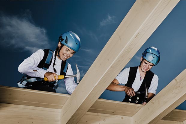 Du willst hoch hinaus? Dann bist du im Zimmererhandwerk genau richtig. Wir haben hier zehn gute Gründe zusammengefasst, warum es sich lohnt Zimmerer/Zimmerin zu werden. Unter anderem genießt du Nestwärme und siehst am Feierabend, was du geschaffen hast.