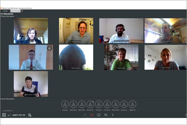 Am 19. Mai 2020 fand die Veranstaltung des Landesinnungsverbandes "Recht trifft Technik" erstmals als Online-Seminar statt. Für die 16 Teilnehmer gab es dabei wichtige Informationen über den Bauordner. Weitere Termine folgen im Mai, hier gelangen Sie zur Anmeldung.